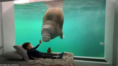 ഒരു ചില്ല് ഗ്ലാസ് മാത്രമുപയോഗിച്ച് വിഭജിച്ച വാൽറസിന്‍റെ ജലവാസ കേന്ദ്രത്തിലേക്ക് നിങ്ങള്‍ക്ക് നേരിട്ട് നോക്കാം. താല്‍പര്യം തോന്നിയാല്‍ നിങ്ങളുടെ സമീപത്തേക്ക് അവനെത്തും.