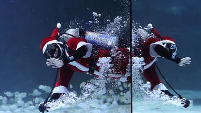 ക്രിസ്മസ് എത്തിയാല് വിപണി ഒന്നുണരും വീണ്ടുമൊരു സീസണിനായി ഒരുങ്ങിനില്ക്കും. എന്നാല് ഇത്തവണ ആദ്യമൊരുക്കം നടത്തിയത് യൂറോപിലോ അമേരിക്കയിലോ അല്ല. മറിച്ച് ദക്ഷിണ കൊറിയയിലാണ്. അതും സാന്താക്ലോസ് തന്നെ രംഗത്തിറങ്ങി. കരയിലല്ല, വെള്ളത്തിലാണെന്ന് മാത്രം. സാന്താക്ലോസ് വസ്ത്രം ധരിച്ച ഒരു മുങ്ങൽ വിദഗ്ധൻ ഇന്ന് (2019 ഡിസംബർ 4) ദക്ഷിണ കൊറിയയിലെ സിയോളിൽ കോക്സ് അക്വേറിയത്തിലെ ടാങ്കിലാണ് കാണികള്ക്കായി മത്സ്യത്തോടൊപ്പം നീന്തിയത്. ക്രിസ്മസിനെ ദേശീയ അവധിദിനമായി അംഗീകരിച്ച, കിഴക്കൻ ഏഷ്യൻ രാജ്യമായ ദക്ഷിണ കൊറിയയിൽ വർഷങ്ങളായി ക്രിസ്മസ് കൂടുതൽ പ്രചാരത്തിലുണ്ട്. ക്രിസ്മസ് അവധിക്കായെത്തുന്ന കുട്ടികളെ ആകര്ഷിക്കാനായാണ് സാന്താക്ലോസിന്റെ അഭ്യാസപ്രകടനങ്ങള്. കാണാം ആ അഭ്യാസങ്ങള്.