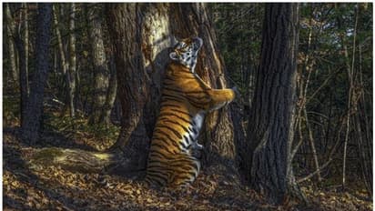 കാടിന്റെ വന്യതയില്, മുന്കാലുകളാല് മരത്തെ പുണര്ന്ന് പിന്കാലില് നില്ക്കുന്ന പെണ്കടുവയുടെ ചിത്രത്തിനാണ് ഇത്തവണത്തെ ഏറ്റവും മികച്ച വന്യജീവി ഫോട്ടോഗ്രഫിക്കുള്ള ലണ്ടനിലെ ദി നാച്ചുറല് ഹിസ്റ്ററി മ്യൂസിയത്തിന്റെ സമ്മാനം ലഭിച്ചത്. സെര്ജി ഗോര്ഷ്കോവ് റഷ്യയില് നിന്നെടുത്ത സൈബീരിയന് പെണ് കടുവയുടെ ചിത്രമാണിത്. റഷ്യയിലെ നാഷണല് പാര്ക്കില് നിന്നാണ് സെര്ജി ഗോര്ഷ്കോവ് ഈ അപൂര്വ്വ ചിത്രമെടുത്തത്. സ്വന്തം അതിര്ത്തി അടയാളപ്പെടുത്തുന്നതിന്റെ ഭാഗമായി പെണ്കടുവ മരവുമായുള്ള സല്ലാപത്തിലാണ്. ഒരു ഓയില് പെയിന്റ് പോലെ മനോഹരമാണ് ഈ ചിത്രമെന്നാണ് അവാര്ഡ് വിധികര്ത്താക്കളില് ഒരാളായ റോസ് കിഡമാന് കോക്സ് പറയുന്നത്.