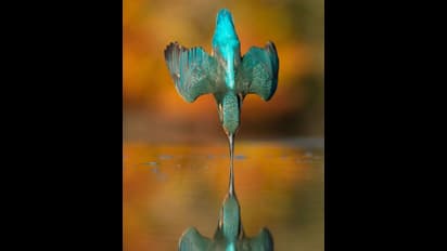 അതെ, അത് പ്രതിഫലനമാണ്. മീന്കൊത്താനായി പറന്നിറങ്ങുന്ന മരം കൊത്തി, ജലോപരിതലത്തില് തന്റെ കൊക്കുകള് മുട്ടിക്കുന്ന നിമിഷം, അല്ല അതിലും ചെറിയൊരു നിമിഷം. ആ പക്ഷിയുടെ ജലോപരിതലത്തിലെ പ്രതിഫലനമാണ് കാഴ്ചക്കാരനെ ആദ്യം തെറ്റിദ്ധരിപ്പിച്ചത്.