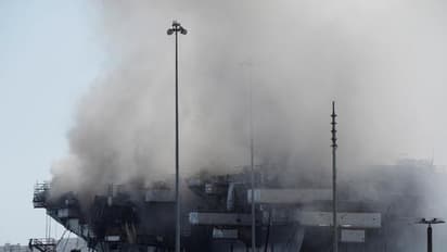 കത്തിയമര്‍ന്ന് അമേരിക്കയുടെ യുദ്ധക്കപ്പല്‍