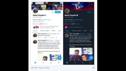 ഇതോടെ തിവാട്ടിയ ട്വിറ്റര് ബയോ തിരുത്തണമെന്ന ആവശ്യപ്പെട്ടുള്ള ട്വീറ്റുകള് ട്രെന്ഡിംഗ് ആയി. അൽപ്പം ലേറ്റായെങ്കിലും ലേറ്റസ്റ്റായി തന്നെ തിവാട്ടിയ എത്തി. രണ്ട് പുതിയ സ്റ്റൈലന് ചിത്രങ്ങള്. രാജസ്ഥാന് റോയൽസ് താരമെന്ന തിരുത്തും. മലയാളി താരം സഞ്ജു സാംസണൊപ്പം നില്ക്കുന്ന ചിത്രമാണ് തിവാട്ടിയയുടെ ട്വിറ്റര് കവര് ചിത്രം.