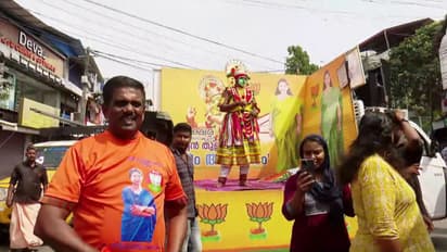 വട്ടിയൂർക്കാവ് എൽഡിഎഫ് സ്ഥാനാർഥി വികെ പ്രശാന്തിൻ്റെ കട്ട് ഒട്ടുമായി കൊട്ടികലാശത്തിനെത്തിയ പ്രവർത്തകർ