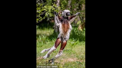 'നിലത്ത് ഇറങ്ങുമ്പോൾ കോക്വെറല്സ് സിഫാക്ക ലെമറുകൾ കൈകള് ഉയര്ത്തി ഒരു സമനിലയ്ക്കായി ആകര്ഷകമായ രീതിയില് വശങ്ങളിൽ അടിവച്ച് നീങ്ങുന്നത് ഒരു നൃത്തം പോലെ കാഴ്ചക്കാര്ക്ക് തോന്നാം " ചെസ്റ്റർ മൃഗശാലയിലെ പ്രൈമറ്റ് കീപ്പർ ഹോളി വെബ് പറഞ്ഞു.