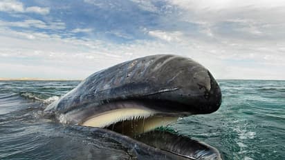 സമുദ്രോപരിതലത്തിലേക്ക് ഉയര്ന്നു വന്ന ചാരനിറത്തിലുള്ള തിമിംഗലം. സ്വാൻ പറഞ്ഞു: 'ഓരോ ഡോള്ഫിനുകളും വ്യത്യസ്തമാണ്, ചിലർ നിങ്ങളെ അടുക്കാൻ അനുവദിക്കില്ല, മറ്റുള്ളവർ അമിത വേഗതയിൽ പാഞ്ഞ് പോകും, മറ്റ് ചിലത് മങ്ങിയ വെള്ളത്തിലാണ് കിടക്കുക, മറ്റുവ മണിക്കൂറുകളോളം കടലിനടിയില് തന്നെ കിടക്കും'.