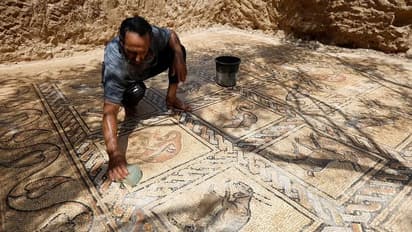 വർണ്ണാഭമായ ജ്യാമിതീയ പാറ്റേൺ, സമൃദ്ധമായി കാണപ്പെടുന്ന മൂന്ന് പുരുഷന്മാർ, കൂടാതെ നിഗൂഢമായ ഒരു ഗ്രീക്ക് ലിഖിതവും ഇതിൽ ഉൾപ്പെട്ടിരുന്നു. ഒരു ചതുരശ്ര മീറ്ററിന് ഏകദേശം 12,000 കല്ലുകൾ എന്ന നിലയിൽ വളരെ ശ്രമകരമായി ക്രമീകരിച്ചിരിക്കുന്ന ചെറിയ ടെസറേ ഉപയോഗിച്ചാണ് ഈ പാറ്റേണുകൾ രൂപപ്പെടുത്തിയിരുന്നതും കൗതുകകരമാണ്.