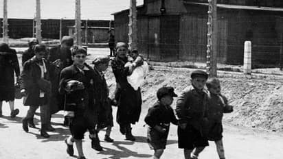 ഓഷ്വിറ്റ്സ്-ബിർകെനോയിൽ എത്തിയ ശിരോവസ്ത്രവും കോട്ടും ധരിച്ച രണ്ട് ജൂതസ്ത്രീകൾ ഒരു എസ്എസ് ഗാർഡിന് മുന്നിൽ ഭയന്ന് നിൽക്കുന്നു. അവരുടെ പിന്നിൽ, പരിശോധനയ്ക്കായി കാത്തിരിക്കുന്ന ജൂതന്മാരുടെ ഒരു നിരയുടെ മുന്നിൽ ഒരു എസ്എസ് ഗാർഡ് നിൽക്കുന്നത് കാണാം. ജോലി ചെയ്യാൻ യോഗ്യരാണെന്ന് കരുതുന്നവരെ ക്യാമ്പിലേക്ക് പ്രവേശിപ്പിക്കും. ബാക്കിയുള്ളവരെ ഗ്യാസ് ചേംബറിയിലേക്കും.