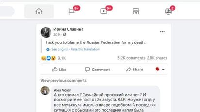 റഷ്യയിലെ പ്രമുഖ വാര്ത്താ പോര്ട്ടലായ കോസ പ്രസ് എഡിറ്റര് ഇന് ചീഫ് ഐറിന സ്ലാവിനയാണ് ഫേസ്ബുക്കില് ആത്മഹത്യാ കുറിപ്പ് പോസ്റ്റ് ചെയ്തതിനു തൊട്ടു പിന്നാലെ ആത്മഹത്യ ചെയ്തത്.