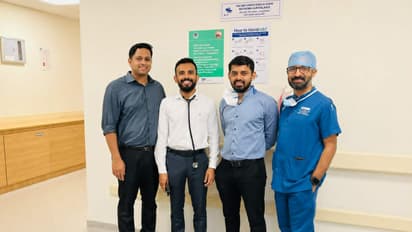 ഫോട്ടോ ക്യാപ്ഷൻ- ചികിത്സയ്ക്ക് നേതൃത്വം നൽകിയ ക്രിട്ടികൽ കെയർ വിഭാഗം ഡയറക്ടർ ഡോ. അമിത് ശ്രീധരൻ, ക്രിട്ടികൽ കെയർ വിഭാഗം മേധാവി ഡോ. റിനോയ് ചന്ദ്രൻ, ഇന്റർ വെൻഷണൽ പൾമനോളജി വിഭാഗം ഡോ. വിഷ്ണു ജി കൃഷ്ണൻ, കാർഡിയക് തൊറാസിക് ആൻഡ് വസ്ക്കുലർ സർജറി വിഭാഗം മേധാവി ഡോ. പ്രസാദ് സുരേന്ദ്രൻ, കാർഡിയക് അനസ്തെഷ്യോളജി വിഭാഗം ഡോ.ഗണേഷ് എന്നിവർ.
