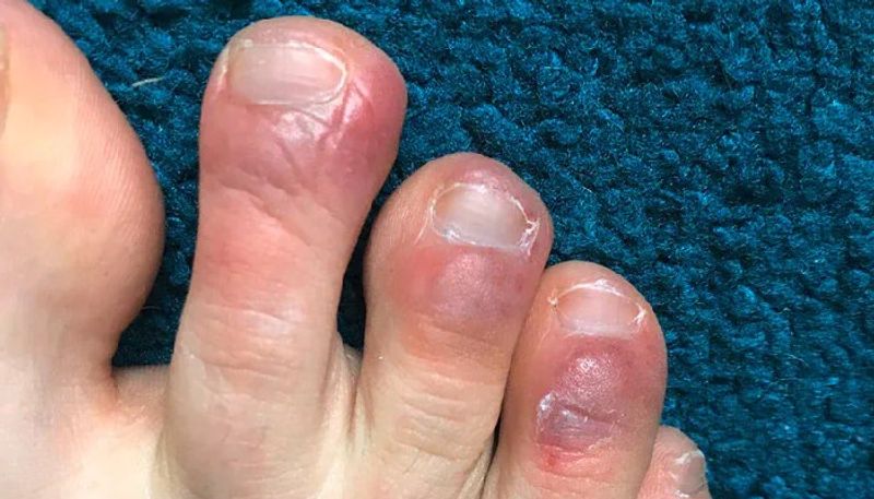 'കൊവിഡ് ടോസ്' എന്നറിയപ്പെടുന്ന, കാല്വിരലുകളില് കാണുന്ന തടിപ്പാണ് ഇതില് പ്രധാന സൂചന. ചുവന്ന നിറത്തില് കാല്വിരലുകളില് കുരു വരികയും ഇത് ചെറുതായി വീര്ക്കുകയും ചെയ്യുന്നതാണ് 'കൊവിഡ് ടോസ്'. മഞ്ഞുകാലങ്ങളില് അല്ലാതെ തന്നെ ഇങ്ങനെ വന്നേക്കാം. എന്നാല് കൊവിഡിന്റെ ലക്ഷണമായും ഇതും വരാം.