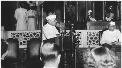 "ദീര്ഘകാലം മുമ്പ് വിധിയുമായി നാം ഒരു സന്ധിയുണ്ടാക്കി, പൂര്ണമായിട്ടോ മുഴുവനായ അളവിലോ അല്ലെങ്കിലും അതിന്റെ സാരാംശം ഉള്ക്കൊണ്ടുകൊണ്ട് ആ പ്രതിജ്ഞ നിറവേറ്റാനുള്ള സമയം ഇതാ ആഗതമായിരിക്കുന്നു. അര്ദ്ധരാത്രിയുടെ മണി മുഴങ്ങുമ്പോള്, ലോകം ഉറങ്ങിക്കിടക്കുമ്പോള് ഇന്ത്യ ജീവിതത്തിലേക്കും സ്വാതന്ത്ര്യത്തിലേക്കും ഉണര്ന്നെണീക്കും. ചരിത്രത്തില് അത്യപൂര്വമായി മാത്രം സംഭവിക്കുന്ന ഒരു നിമിഷം സമാഗതമായിരിക്കുന്നു, നാം പഴയതില് നിന്ന് പുതിയതിലേക്ക് ചുവടുവെയ്ക്കുമ്പോള്, ഒരു യുഗം അവസാനിക്കുമ്പോള്, കാലങ്ങളായി അടിച്ചമര്ത്തപ്പെട്ട ഒരു രാഷ്ട്രത്തിന്റെ ആത്മാവ് ശബ്ദം കണ്ടെത്തുകയാണ്..."