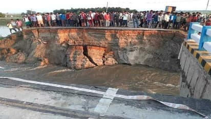 നദിയിലെ ജലനിരപ്പ് വര്ധിച്ചപ്പോള് പാലവുമായി റോഡിനെ ബന്ധിപ്പിക്കുന്ന കല്ലുകള്ക്ക് സമ്മര്ദ്ദം നേരിടാന് കഴിയാതെ വന്നതാണ് പാലം തകരാന് കാരണമെന്നാണ് പ്രാഥമിക നിഗമനം. 260 കോടി രൂപ ചെലവിട്ട് നിര്മിച്ചതാണ് ഈ പാലം.
