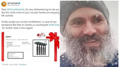 ആമസോണിൽ നിന്ന് ഒരു സെറ്റ് റേസർ ബ്ലേഡ് വാങ്ങി ഒമറിന്റെ അഡ്രസ്സിൽ അയച്ച് അതിന്റെ സ്ക്രീൻ ഷോട്ട് പങ്കുവെച്ചുകൊണ്ടാണ് ബിജെപി തമിഴ്നാട് ഘടകം തങ്ങളുടെ നിലപാട് വ്യക്തമാക്കിയിരിക്കുന്നത്. ഒപ്പം ഒരു സന്ദേശവുമുണ്ട്, " ഡിയർ ഒമർ അബ്ദുള്ള, നിങ്ങളുടെ അഴിമതിക്കാരായ സകല സ്നേഹിതരും പുറത്ത് അർമാദിക്കുമ്പോൾ അക്കൂട്ടത്തിൽ പെട്ട നിങ്ങൾ മാത്രം ഇങ്ങനെ പ്രയാസപ്പെടുന്നത് കാണുമ്പോൾ വല്ലാത്ത സങ്കടമുണ്ട്.