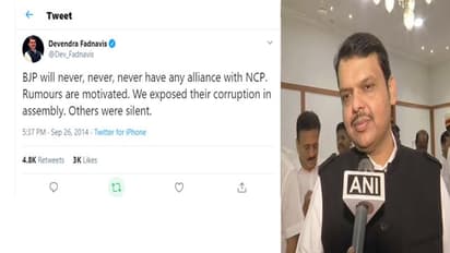 മുംബൈ: വൻരാഷ്ട്രീയ അട്ടിമറിക്ക് പിന്നാലെ വൈറലായി മഹാരാഷ്ട്ര മുഖ്യമന്ത്രി ദേവേന്ദ്ര ഫഡ്നാവിസിന്റെ ട്വീറ്റ്. എന്സിപിയുമായി ഒരിക്കലും സഖ്യമുണ്ടാക്കില്ലെന്ന ഫട്നാവിസിന്റെ പഴയ ട്വീറ്റാണ് സമൂഹമാധ്യമങ്ങള് കുത്തിപ്പൊക്കിയിരിക്കുന്നത്. 2014 സെപ്തംബര് 26ന് ചെയ്ത ട്വീറ്റ് ഫട്നാവിസിന്റെ സത്യപ്രതിജ്ഞയോടെ വീണ്ടും വൈറലാവുകയാണ്.