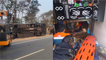 ബെംഗളൂരു: കർണാടകയിലെ ഹംപിയിൽ ബസ് നിയന്ത്രണം വിട്ട് തലകീഴായി മറിഞ്ഞു. ഗുരുവായൂർ ശ്രീകൃഷ്ണ കോളേജിൽ നിന്ന് പഠനയാത്രയ്ക്ക് തിരിച്ച സംഘം സഞ്ചരിച്ച ബസ് ആണ് അപകടത്തിൽപ്പെട്ടത്. മൂന്ന് വിദ്യാർത്ഥികൾക്കും അധ്യാപികയ്ക്കും പരിക്കേറ്റു. സംസ്കൃത വിഭാഗത്തിലെ അസിസ്റ്റന്റ് പ്രൊഫസർ ഗൗരി ലക്ഷ്മിക്കാണ് കാലിന് ഗുരുതര പരിക്കേറ്റത്. വിദ്യാർത്ഥികളുടെ പരിക്ക് സാരമുള്ളതല്ല. അമ്മൻകേരി ക്രോസ്സിന് സമീപം രാവിലെ ഡിവൈഡറിൽ തട്ടിയ ബസ് തലകീഴായി മറിയുകയായിരുന്നു.