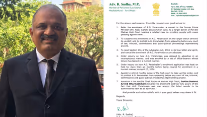 ചെന്നൈ: പേരറിവാളൻ അഭിഭാഷകനായി എൻറോൾമെന്റ് ചെയ്ത സംഭവത്തിൽ രാഷ്ട്രപതിക്ക് കത്ത് നൽകി കോൺഗ്രസ്സ് എംപി ആർ സുധ. കോടതികളിൽ ഹാജരാകാൻ പേരറിവാളനെ അനുവദിക്കരുതെന്നും ബാർ കൗൺസിൽ റോളിൽ നിന്ന് ഉടൻ നീക്കണമെന്നും കത്തിൽ ആവശ്യപ്പെട്ടു. മദ്രാസ് ഹൈക്കോടതിയുടെ വിശാല ബഞ്ച് വിഷയം പരിഗണിക്കണം. ഭീകരവാദ പ്രവർത്തനങ്ങളിൽ ഏർപ്പെട്ടവരെ അഭിഭാഷകർ ആകാൻ അനുവദിക്കരുതെന്നും കത്തിൽ പറയുന്നു.