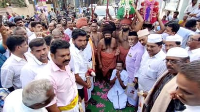 ചെന്നൈ: തമിഴ്നാട്ടിലെ (Tamil nadu) തൃക്കടയൂരിൽ നിന്ന് മതേതര സൗഹാർദ്ദത്തിന്റെ ഒരു നല്ല മാതൃക. അമൃതകണ്ഠേശ്വര ക്ഷേത്രത്തിലെ (Amritakandeshwara Temple) കുംഭാഭിഷേകത്തിന് പോകുന്ന സന്ന്യാസി സംഘത്തിന് മുസ്ലീം ജമാ അത്ത് കമ്മിറ്റിയും ക്രിസ്ത്യൻ പുരോഹിതരും ചേർന്നൊരുക്കിയ സ്വീകരണമാണ് ശ്രദ്ധേയമായത്. ഈ മാസം 27നാണ് പ്രസിദ്ധമായ തൃക്കടയൂർ അഭിരാമി അമ്മൻ അമൃത കണ്ഠേശ്വര ക്ഷേത്രത്തിലെ കുംഭാഭിഷേകം. ചടങ്ങിനായി കാരയ്ക്കലിലെ ധർമപുരം അഥീന മഠത്തിൽ നിന്ന് ക്ഷേത്രത്തിലേക്ക് പദയാത്രയായി പോകുന്ന ഗുരുലിംഗം സന്ന്യാസി സംഘത്തിന് നാനാ ജാതിമതസ്ഥർ ചേർന്ന് സ്വീകരണം നൽകി. ധർമപുരം അഥീനം മഠാധിപതിയുടെ നേതൃത്വത്തിലുള്ള സന്യസ്ഥ സംഘത്തെയാണ് ജമാ അത്ത് കമ്മിറ്റിയും ക്രിസ്ത്യൻ പുരോഹിതരും ചേർന്ന് സ്വീകരിച്ചത്.