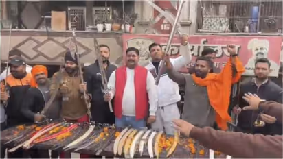 ഗാസിയാബാദ്: യുപിയിലെ ഗാസിയാബാദിൽ ജനങ്ങൾക്ക് വാളടക്കം ആയുധങ്ങൾ വിതരണം ചെയ്ത് തീവ്രസംഘടന. തീവ്രസംഘടനയായ ഹിന്ദു രക്ഷാ ദളാണ് ആയുധവിതരണം നടത്തിയത്. ജിഹാദികളെ നേരിടാനാണ് ആയുധങ്ങൾ വീടുകളിൽ വിതരണം ചെയ്തതെന്ന് ഇവർ പറയുന്നു. നഗരത്തിൽ റോഡരികിൽ നൂറുകണക്കിന് ആയുധങ്ങൾ നിരത്തിവെച്ച് സ്റ്റാൾ തുറന്നായിരുന്നു ഉദ്ഘാടനം. വാളുകൾ, മഴു, കുന്തം എന്നിവയുൾപ്പെടെ നിരവധി മൂർച്ചയുള്ള ആയുധങ്ങൾ സ്റ്റാളിൽ സൂക്ഷിച്ചിരുന്നു. സംഭവത്തിൽ കേസ് എടുത്ത് പൊലീസ് 10 പേരെ അറസ്റ്റ് ചെയ്തു. ഹിന്ദു രക്ഷാ ദൾ (എച്ച്ആർഡി) അംഗങ്ങൾ ആളുകൾക്ക് വാളുകൾ വിതരണം ചെയ്യുന്നതും ആക്രമണങ്ങളിൽ നിന്ന് സ്വയം പ്രതിരോധിക്കാൻ പറയുന്നതും കാണിക്കുന്ന വീഡിയോകൾ പ്രചരിച്ചതിനെ തുടർന്നാണ് നടപടിയെടുത്തത്.