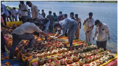 ചിതാഭസ്മം മന്ത്രിയുടെ നേതൃത്വത്തില് കാവേരി നദിയിലൊഴുക്കുന്നു.
