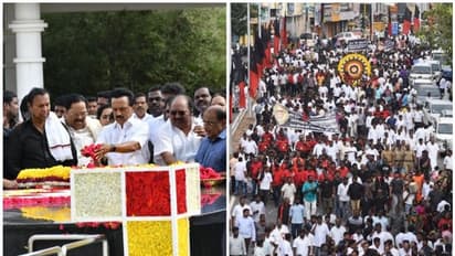 ചെന്നൈ: ഡിഎംകെ അധ്യക്ഷനും തമിഴ്നാട് മുന് മുഖ്യമന്ത്രിയുമായ എം കരുണാനിധി ഓർമ്മയായിട്ട് ഇന്ന് ഒരുവർഷം. കരുണാനിധിയുടെ ഒന്നാം ചരമവാർഷികത്തിൽ ഡിഎംകെ നേതാക്കളും പാർട്ടി പ്രവർത്തകരും കരുണാസമാധിയിൽ എത്തി ആദരാഞ്ജലികൾ അർപ്പിച്ചു. ചെന്നൈ അണ്ണാശാലയിൽ നിന്ന് കരുണാസമാധിയിലേക്ക് നടന്ന അനുസ്മരണ റാലിയിൽ കോൺഗ്രസ് നേതാവ് എ കെ ആന്റണി, ബംഗാൾ മുഖ്യമന്ത്രി മമതാ ബാനർജി തുടങ്ങിയവർ പങ്കെടുത്തു.
