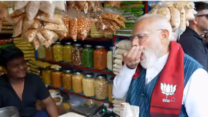 ഝാർഗ്രാം: ബംഗാളിൽ മോദിയുടെ ഝാൽമുരി ബ്രേക്ക്. റാലി പ്രസംഗങ്ങൾക്കിടയിലെ ഇടവേളയിലാണ് നാടൻ രുചി തേടി പ്രധാനമന്ത്രി ചെറിയ കടയിൽ എത്തിയത്. പശ്ചിമ ബംഗാളിലെ പുരുലിയ, ഝാർഗ്രാം, മേദിനിപൂർ, വിഷ്ണുപൂർ എന്നിവിടങ്ങളിൽ ഞായറാഴ്ച നടന്ന നാല് വമ്പൻ റാലികൾക്കിടയിലാണ് പ്രധാനമന്ത്രി നരേന്ദ്ര മോദി ഝാർഗ്രാമിലെ ഒരു ചെറിയ കടയിൽ ഝാൽമുരി കഴിക്കാൻ എത്തിയത്. "തിരക്കേറിയ ഞായറാഴ്ചയിൽ ബംഗാളിലെ നാല് റാലികൾക്കിടയിൽ ഝാർഗ്രാമിൽ നിന്ന് സ്വാദിഷ്ടമായ ഝാൽമുരി കഴിച്ചു," എന്ന് അദ്ദേഹം എക്സിൽ കുറിച്ചു.
