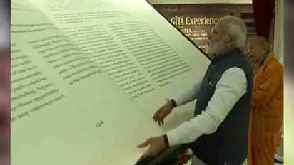 ദില്ലി: എണ്ണൂറ് കിലോ ഭാരമുള്ള ലോകത്തിലെ ഏറ്റവും വലിയ ഭഗവത് ഗീത പ്രധാനമന്ത്രി നരേന്ദ്ര മോദി പ്രകാശനം ചെയ്തു. ദില്ലിയിലെ ഇസ്കോണ് ക്ഷേത്രത്തിലാണ് ഭഗവത് ഗീത പ്രകാശനം ചെയ്തത്. 2.8 മീറ്റര് നീളവും രണ്ട് മീറ്റര് വീതിയും 670 പുറങ്ങളുമുള്ള ഭഗവത് ഗീതയില് 18 പെയിന്റിങ്ങുകളുമുണ്ട്. കലാപരമായി രൂപകല്പ്പന ചെയ്ത പേജുകളുടെ കടലാസുകള് നനഞ്ഞാല് നശിക്കാത്തതോ കീറാത്തതോ ആണ്. ഇറ്റലിയിലെ മിലാനില് അച്ചടിച്ച ഭഗവത് ഗീതക്കായി 2.2 ലക്ഷം യൂറോയാണ് ചിലവായത്..