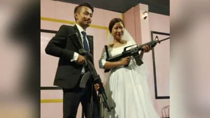 നാഗാലാന്റിലെ എന്എസ്സിഎന് - യു (National Socialist council of Nagaland-Unification)നേതാവ് ബൊഹോതോ കിബയുടെ മകനും വധുവുമാണ് വിവാഹത്തിന് തോക്കുമായി നില്ക്കുന്നത്. എ കെ 47, എം16 എന്നീ ഓട്ടോമാറ്റിക് തോക്കുകളാണ് ഇവരുടെ പക്കല് ഉണ്ടായിരുന്നത്. നവംബര് 9 ന് നടന്ന റിസപ്ഷനില് ഇരുവരും തോക്കുമായെത്തിയത് ക്ഷണിക്കപ്പെട്ട അതിഥികളെ വരെ ഞെട്ടിച്ചുവെന്നാണ് റിപ്പോര്ട്ടുകള്.