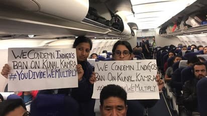 മാധ്യമപ്രവർത്തകൻ അർണാബ് ഗോസ്വാമിയെ വിമാനയാത്രക്കിടെ ചോദ്യം ചെയ്ത ഹാസ്യകലാകാരന് കുനാൽ കമ്രക്ക് യാത്ര വിലക്കേർപ്പെടുത്തിയ ഇൻഡിഗോ എയർലൈൻസിന്റെ നടപടിക്കെതിരെ പ്രതിഷേധം. മലയാളികൾ അടക്കമുള്ള യാത്രക്കാരാണ് പ്രതിഷേധവുമായി എത്തിയത്. ഇൻഡിഗോയുടെ വരാണസി-ഡൽഹി വിമാനത്തിലും, എയർ ഇന്ത്യയുടെ കണ്ണൂർ-അബൂദാബി വിമാനത്തിലുമാണ് യാത്രക്കാർ കുനാൽ കമ്രക്ക് പിന്തുണയുമായി പ്രതിഷേധ പ്രകടനം നടത്തിയത്.