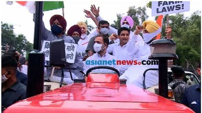 ദില്ലി: തീർത്തും നാടകീയമായി ദില്ലി നഗരത്തിലൂടെ ട്രാക്റ്ററോടിച്ച് പ്രതിഷേധം നടത്തി കോൺഗ്രസ് എംപി രാഹുൽ ഗാന്ധി. കർഷകനിയമങ്ങൾക്ക് എതിരായാണ് രാഹുൽ ഗാന്ധിയുടെ പ്രതിഷേധം. രാവിലെ പാർലമെന്റിലേക്ക് എത്താൻ പുറപ്പെട്ട രാഹുൽ ഗാന്ധി തീർത്തും അപ്രതീക്ഷിതമായിട്ടാണ് എഐസിസി ആസ്ഥാനത്ത് നിന്ന് ട്രാക്റ്ററിലേക്ക് കയറി അതോടിച്ച് ദില്ലി നഗരത്തിലൂടെ പാർലമെന്റിന് സമീപത്ത് എത്തിയത്.