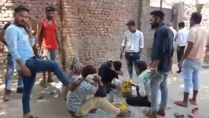 ഉത്തർപ്രദേശിലെ ബറേലിയിൽ ശനിയാഴ്ച്ചയാണ് സംഭവം. വീട് പണിയെടുക്കുന്നതിനായി ബഹേരിയിലെത്തിയ യുവാക്കൾ ഉച്ചയ്ക്ക് ഭക്ഷണം കഴിക്കുന്നതിനായി മരച്ചുവട്ടിലെ പ്രതിഷ്ഠാസ്ഥാനത്തിന് സമീപത്തായിരുന്നു ഇരുന്നത്. ഇത് കാണാനിടയായ അക്രമി സംഘം ആരാധനാലയത്തിന് സമീപത്ത് വച്ച് മാംസം കഴിച്ചെന്നാരോപിച്ച് യുവാക്കളെ ചെരുപ്പ് ഉപയോഗിച്ച് പൊതിരെ തല്ലുകയായിരുന്നു.