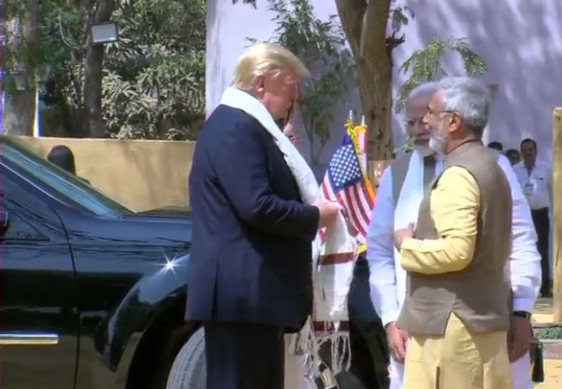 സബർമതി ആശ്രമത്തിനകത്തും ട്രംപിനെ കാണാൻ നിരവധിപ്പേർ എത്തിയിരുന്നു. ട്രംപിനെ കണ്ടപ്പോൾ അകത്ത് ഉണ്ടായിരുന്നവർ ആർത്ത് വിളിച്ചു. ആദ്യം ആശ്രമത്തിന് പുറത്ത് സജ്ജീകരിച്ചിരുന്ന ഇരിപ്പിടങ്ങളിൽ ഇരുന്ന ട്രംപിനും മെലാനിയക്കും ആശ്രമത്തിന് ഇന്ത്യൻ ചരിത്രത്തിലുള്ള സ്ഥാനം മോദി വിശദീകരിച്ചുകൊടുത്തു. അതിന് ശേഷം മോദിയും ട്രംപും മെലാനിയയും അകത്തേയ്ക്ക് പോയി. ഓരോരോ ചിത്രങ്ങളും മോദി ഇരുവർക്കും വിശദീകരിച്ചുകൊടുത്തു. അതിന് ശേഷമാണ്, ആശ്രമത്തിന്റെ വരാന്തയിൽ വച്ചിരുന്ന ചർക്ക മോദി ഇരുവർക്കും കാണിച്ച് കൊടുത്തത്.