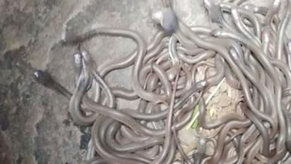 ഉടൻ തന്നെ ബിജയ് അയൽക്കാരെ വിളിച്ച് കൂട്ടി. ചിതൽപ്പുറ്റിൽ നിറയെ പാമ്പുകളുണ്ടെന്ന് മനസിലാക്കിയ അയൽക്കാർ സ്നേക്ക് ഹെൽപ്പ് ലൈൻ പ്രവർത്തകരെ വിളിച്ച് വരുത്തി. ഇവരെത്തി ചിതൽപ്പുറ്റ് പൊളിച്ചു മാറ്റി. ചിതൽപ്പുറ്റ് പൊളിച്ചപ്പോൾ നാട്ടുക്കാർ ശരിക്കും ഞെട്ടിപ്പോയി. 110 മൂർഖൻ കുഞ്ഞുങ്ങളും 21 മുട്ടകളും 2 വലിയ മൂർഖൻ പാമ്പുകളെയുമാണ് ചിതൽപ്പുറ്റിൽ നിന്ന് കണ്ടെത്തിയത്.ഒഡീഷയിലെ തീരദേശ മേഖലയായ ബദർക്ക് ജില്ലയിലെ ശ്യാംപൂർ ഗ്രാമത്തിലാണ് സംഭവം.