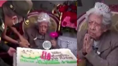 അനിറ്റ റോജാസ് എന്ന 110 കാരിയായ മുത്തശ്ശിയുടെ പിറന്നാളാണ് പൊലീസുകാരും അയൽവാസികളും സുഹൃത്തുക്കളും ചേർന്ന് ആഘോഷമാക്കിയത്. വാർത്താ ഏജൻസിയായ റോയിട്ടേഴ്സ് ആണ് കൊളമ്പിയയിൽ നിന്നുള്ള ഈ കാഴ്ചയുടെ ദൃശ്യങ്ങൾ പങ്കുവച്ചിരിക്കുന്നത്. ആഘോഷത്തിൽ പങ്കെടുത്ത എല്ലാവരും സുരക്ഷാ ക്രമീകരണങ്ങൾ പാലിച്ചിരിക്കുന്നത് വീഡിയോയിൽ കാണാവുന്നതാണ്.