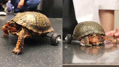 രണ്ട് കാലുകളും നഷ്ടമായ ആമയ്ക്ക് നടക്കാനായി പ്രത്യേക തരത്തിലുള്ള വീൽ ചെയർ ഒരുക്കി ഉടമസ്ഥ. സാന്ദ്രാ ട്രെയ്ലര് എന്ന യുവതിയാണ്