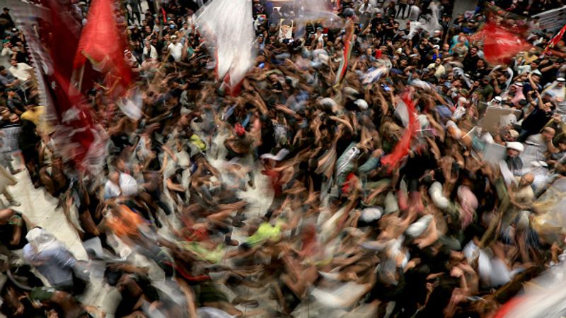 (ഷിയാ നേതാവും ഇറാൻ വിരുദ്ധനുമായ മുഖ്തദ അൽ സദറിന്റെ അനുയായികള് ഇറാഖി പാര്ലമെന്റില് അതിക്രമിച്ച് കയറിയപ്പോള്. )