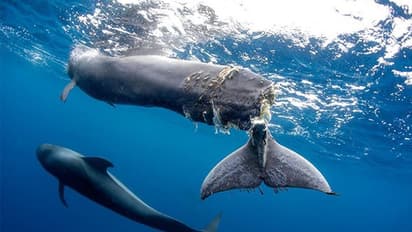 വാൽ അറ്റ നിലയിൽ നിസ്സഹായനായി കടലിൽ നീന്തുന്ന കുട്ടി തിമിംഗത്തിന്റെ കരളലിയിക്കുന്ന ചിത്രങ്ങളാണ് സോഷ്യൽമീഡിയയിൽ ഇപ്പോൾ വ്യാപകമായി പ്രചരിക്കുന്നത്. അണ്ടര് വാട്ടര് ഫൊട്ടോഗ്രാഫറായ ഫ്രാന്സിസ് പെറസ് ആണ് കാനറി ദ്വീപിന്റെ സമീപത്തുനിന്ന് കുട്ടി തിമിംഗലത്തിന്റെ ചിത്രങ്ങൾ പകർത്തിയത്. ക്രിസ്റ്റീന മിറ്റര്മീയര് എന്ന സമുദ്രഗവേഷകയാണ് ചിത്രങ്ങൾ സോഷ്യൽമീഡിയയിൽ പങ്കുവച്ചത്.