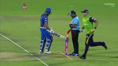 തുടക്കത്തിലെ ക്വിന്റണ് ഡീ കോക്കിനെ നഷ്ടമായതോടെ മുംബൈയുടെ പ്രതീക്ഷകള് രോഹിത്തിന്റെ ബാറ്റിലായിരുന്നു. എന്നാല് നാലാം ഓവറില് ഗുര്നെയുടെ പന്തില് വിക്കറ്റിന് മുന്നില് കുടുങ്ങിയ രോഹിത്തിനെ അമ്പയര് എല്ബിഡബ്ല്യു ഔട്ട് വിളിച്ചു. അമ്പയറുടെ തീരുമാനം റിവ്യു ചെയ്തെങ്കിലും പന്ത് വിക്കറ്റ് കൊള്ളുമെന്നതിനാല് ഓണ്ഫീല്ഡ് അമ്പയറുടെ തീരുമാനം ശരിയാണെന്ന് റിവ്യു വന്നു.