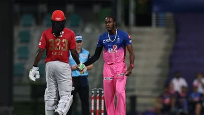 കിംഗ്സ് ഇലവന് പഞ്ചാബ് ഇന്നിംഗ്സിലെ അവസാന ഓവര് ജോഫ്ര ആര്ച്ചര് എറിയാനെത്തുമ്പോള് 92 റണ്സുമായി ക്രിസ് ഗെയ്ലും അഞ്ച് റണ്സെടുത്ത് മാക്സ്വെല്ലുമായിരുന്നു ക്രീസില്. ഓവറിലെ മൂന്നാം പന്ത് ഗെയ്ല് തകര്പ്പനൊരു സിക്സര് പറത്തി. എന്നാല് തൊട്ടടുത്ത പന്തില് ഗെയ്ലിനെ ബൗള്ഡാക്കി ആര്ച്ചര് പ്രതികാരം ചെയ്തു. 63 പന്തില് എട്ട് സിക്സും നാല് ഫോറും പറത്തിയ ഗെയ്ല് 99ല് പുറത്ത്.