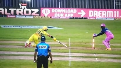 കറന് പിന്നാലെ ക്രീസിലെത്തിയ യുവതാരം റിതുരാജ് ഗെയ്ക്വാദ് ആദ്യ പന്തില് തന്നെ ക്രീസില് നിന്ന് ചാടിയിറങ്ങി. അടിതെറ്റിയ ഗെയ്ക്വാദിന് തിരിച്ചുവരവിന് യാതൊരു അവസരവും നല്കാതെ സഞ്ജു വിക്കറ്റ് തെറിപ്പിച്ചു. തിരിഞ്ഞുപോലും നോക്കാതെ ഗെയ്ക്വാദ് ക്രീസ് വിട്ടു. നേരത്തെ ബാറ്റിംഗില് തിളങ്ങിയ സഞ്ജുവിന് വിക്കറ്റിന് പിന്നിലും തിളങ്ങാനായത് ഇരട്ടിമധുരമായി.