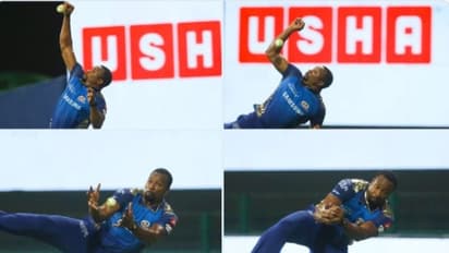 സിക്സെന്ന ഉറപ്പിച്ച ഷോട്ട് പോള്ളാര്ഡ് അവിശ്വസനീയമായി കയ്യിലൊതുക്കുകയായിരുന്നു. ബൗണ്ടറി ലൈനില് നിന്ന് വായുവില് ചാടിയ പൊള്ളാര്ഡ് വലങ്കൈ കൊണ്ട് ക്യാച്ചെടുക്കാന് ശ്രമിച്ചു. എന്നാല് പന്ത് കയ്യില് തട്ടിതെറിച്ചു. ക്യാച്ച് നഷ്ടമാവുമെന്ന് തോന്നിച്ചെങ്കിലും ഞൊടിയിടയില് താരം പന്ത് കയ്യിലൊതുക്കി. വിസ്മയ ക്യാച്ചിന്റെ വീഡിയോ കാണാം...
