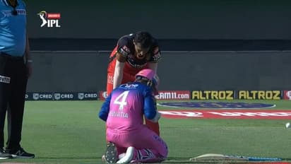 സെയ്നി ഓടിയെത്തി ആശങ്കയുടെ നിമിഷങ്ങള്ക്കൊടുവില് തെവാട്ടിയ എഴുന്നേറ്റു. ഫിസിയോ എത്തി പരിശോധിച്ചശേഷം വീണ്ടും ബാറ്റിംഗ് ക്രീസിലെത്തിയ തെവാട്ടിയ സെയ്നിയുടെ അടുത്ത രണ്ട് പന്തും സ്ക്വയര് ലെഗ്ഗിലേക്ക് സിക്സിന് പറത്തിയാണ് മറുപടി നല്കിയത്.