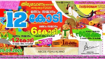 തിരുവനന്തപുരം: തിരുവോണം ബമ്പർ ഭാഗ്യക്കുറിയുടെ ഭാഗ്യശാലിയെ നാളെ അറിയാം. നാളെ (സെപ്റ്റംബർ 20 ഞായറാഴ്ച) ഉച്ചയ്ക്ക് രണ്ട് മണിക്ക് തിരുവനന്തപുരം ഗോർഖി ഭവനിൽ വച്ചാണ് നറുക്കെടുപ്പ്. 12 കോടിയാണ് തിരുവോണം ബമ്പറിന് ഒന്നാം സമ്മാനമായി ലഭിക്കുക. രണ്ടാം സമ്മാനമായി ഒരു കോടി വീതം ആറുപേർക്കും മൂന്നാം സമ്മാനമായി 10 ലക്ഷം രൂപ വീതം 12 പേർക്കും ലഭിക്കും. നാലാം സമ്മാനമായി 12 പേർക്ക് 5 ലക്ഷം രൂപ വീതം നൽകും. ഒരു ലക്ഷം, 5000, 3000, 2000, 1000 രൂപയുടെ മറ്റ് അനവധി സമ്മാനങ്ങളുമുണ്ട്. 300 രൂപയാണ് ടിക്കറ്റ് വില.