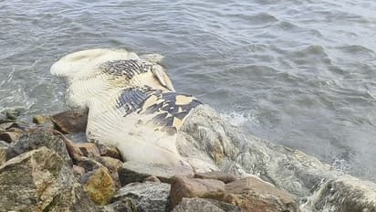 അമ്പലപ്പുഴ: പുറക്കാട് പുന്തല കടൽത്തീരത്ത് കൂറ്റൻ നീലത്തിമിംഗലമടിഞ്ഞു കയറി. തീരത്ത് കടൽഭിത്തിക്കിടയില് ഇന്ന് ഉച്ചയോടെയാണ് ഏകദേശം 25 മീറ്റർ നീളമുള്ള തിമിംഗലം അടിഞ്ഞത്. രാവിലെ മുതൽ പുറക്കാട് പുറം കടലിൽ ചത്ത തിമിംഗലം ഒഴുകി നടന്നിരുന്നു. ഇത് പിന്നീട് ഉച്ചയോടെയാണ് പുറക്കാട് തെക്ക് പുന്തല കടൽത്തീരത്ത് അടിഞ്ഞു കയറിയത്. അതിരൂക്ഷമായ ദുർഗന്ധമാണ് പ്രദേശത്ത്.