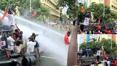 തിരുവനന്തപുരം: യൂണിവേഴ്സിറ്റി കോളേജിലെ സംഘര്ഷ സംഭവങ്ങളില് പ്രതിഷേധിച്ച് യുവമോർച്ച, എബിവിപി മാര്ച്ച്. യൂണിവേഴ്സിറ്റി കോളേജിലേക്ക് നടത്തിയ മാര്ച്ച് പൊലീസ് തടഞ്ഞതോടെ സ്ഥലത്ത് സംഘര്ഷമുണ്ടായി. പ്രവര്ത്തകര് ബാരിക്കേഡുകള് മറിച്ചിടാന് ശ്രമിച്ചതോടെ പൊലീസ് ജലപീരങ്കി പ്രയോഗിച്ചു. പൊലീസ് പലതവണ ജലപീരങ്കിയും കണ്ണീർവാതകവും പ്രയോഗിച്ചതിന് ശേഷമാണ് സംഘര്ഷത്തിന് അയവ് വന്നത്. സംഘർഷത്തിൽ പരിക്കേറ്റ യുവമോർച്ച പ്രവർത്തകനെ ആശുപത്രിയിലേക്ക് മാറ്റി.