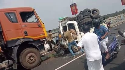 തൃശ്ശൂർ: ചേറ്റുവ പാലത്തിനു മുകളിൽ കണ്ടെയ്നർ ലോറിയും മിനിലോറിയും കൂട്ടിയിടിച്ച് രണ്ടു പേർ മരിച്ചു. മേലെ പട്ടാമ്പി സ്വദേശി കൊളമ്പിൽ വീട്ടിൽ മുഹമ്മദാലി, ഉസ്മാൻ എന്നിവരാണ് മരിച്ചത്. ഇന്ന് ഉച്ചക്ക് 2.30യോടെയാണ് അപകടം നടന്നത്. ചാവക്കാട് ഭാഗത്ത് നിന്നും വരികയായിരുന്ന കണ്ടെയ്നർ ലോറി മറ്റൊരു വാഹനത്തെ മറികടന്ന്, എതിരെ വന്ന മിനിലോറിയുമായി കൂട്ടിയിടിക്കുകയായിരുന്നു. മിനിലോറിയിൽ ഉണ്ടായിരുന്നവരാണ് മരിച്ചത്.