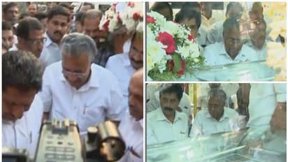 കോട്ടയം: ഇന്നലെ അന്തരിച്ച കേരള കോണ്ഗ്രസ് (എം) ചെയര്മാന് കെ എം മാണിക്ക് അന്ത്യോപചാരമര്പ്പിക്കാന് മുഖ്യമന്ത്രി പിണറായി വിജയന് എത്തി. കടുത്തുരുത്തിയിലെത്തിയാണ് മുഖ്യമന്ത്രി അന്ത്യാഞ്ജലി അര്പ്പിച്ചത്. വന് ജനാവലിയുടെ സാന്നിദ്ധ്യത്തില് കടുത്തുരുത്തിയിലേക്ക് പ്രവേശിച്ച വിലാപയാത്രയിലെത്തി അദ്ദേഹം മാണിയ്ക്ക് അന്ത്യോപചാരമര്പ്പിക്കുകയായിരുന്നു.