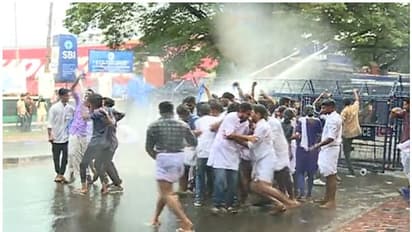 തിരുവനന്തപുരം: കേരള സർവ്വകലാശാല മോഡറേഷൻ തട്ടിപ്പില് പ്രതിഷേധിച്ച് നടന്ന കെഎസ്യുവിന്റെ നിയമസഭാ മാര്ച്ചില് സംഘര്ഷം. ഷാഫി പറമ്പില് എംഎല്എ അടക്കമുള്ളവര്ക്ക് സംഘര്ഷത്തില് പരിക്കേറ്റു. ഒരു പ്രകോപനവുമില്ലാതെ പൊലീസ് അടിച്ച് തലപൊട്ടിച്ച് പ്രകോപനം ഉണ്ടാക്കാന് ശ്രമിക്കുകയാണെന്ന് ഷാഫി പറമ്പില് പറഞ്ഞു. സമരം സമാധാനത്തോടെ പിരിയണമെന്ന ആഗ്രഹത്തോടെയാണ് സഭയില് നിന്ന് വന്നത്. പൊലീസിനോട് പറഞ്ഞത് സംഘര്ഷത്തിലേക്ക് പോകരുതെന്നാണ്. പ്രവര്ത്തകരോട് അറസ്റ്റ് വരിച്ച് സമരം അവസാനിപ്പിക്കണമെന്നും ഷാഫി പറമ്പില് ആവശ്യപ്പെട്ടു.