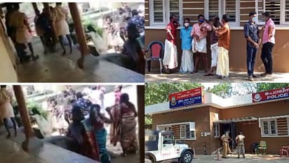 ആര്യങ്കാവ് പൊലീസെത്തിയാണ് സംഘര്ഷം അവസാനിപ്പിച്ചത്. മദ്യപിച്ച് വിവാഹത്തിനെത്തി സംഘര്ഷമുണ്ടാക്കിയ ഏഴു പേര്ക്കെതിരെ പൊലീസ് കേസെടുത്തു. ബന്ധുക്കള് തമ്മിലടിച്ചെങ്കിലും ആര്യങ്കാവ് സ്വദേശിനിയായ വധുവും കടയ്ക്കല് സ്വദേശിയായ വരനും ഒന്നിച്ചു ജീവിക്കാന് തീരുമാനിച്ച് വരന്റെ വീട്ടിലേക്ക് മടങ്ങി.