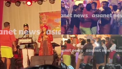 കണ്ണൂർ: കണ്ണൂർ കണ്ണാടിപറമ്പ് ശ്രീ മുത്തപ്പൻ ക്ഷേത്രമഹോത്സവത്തിനിടെ ഗണഗീതം പാടിയത് നിർത്തിച്ച് സിപിഎം പ്രവർത്തകർ. തൃശ്ശൂരിൽ നിന്നുള്ള ഗായകസംഘമാണ് ഗണഗീതം പാടിയത്. 'പരമ പവിത്രമതാമീ മണ്ണിൽ ' എന്നുതുടങ്ങുന്ന ഗാനമാണ് സംഘം ആലപിച്ചത്. പിന്നാലെ സിപിഎം പ്രവർത്തകർ സ്റ്റേജിൽ കയറി. ഉന്തും തള്ളുമായതോടെ പാട്ട് നിർത്തുകയായിരുന്നു.