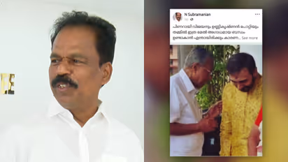 ഇതുകൊണ്ടൊന്നും സ്വര്ണക്കൊള്ളക്കെതിരെ പ്രതികരിക്കുന്നതിൽ നിന്ന് പിന്നോട്ടുപോകില്ല. രണ്ട് ചിത്രമാണ് ആദ്യം പോസ്റ്റ് ചെയ്തത്. അതിൽ ഒരെണ്ണം ഡിലീറ്റ് ചെയ്തിരുന്നു. ഉണ്ണികൃഷ്ണൻ പോറ്റിയോട് പിണറായി വിജയൻ സംസാരിക്കുന്ന ഫോട്ടോയാണ് ഡിലീറ്റ് ചെയ്തത്. അതും എഐ അല്ല. സാമൂഹിക മാധ്യമങ്ങളിൽ നിന്ന് കിട്ടിയതാണ് അത്. ആരും നിര്മിച്ചെടുത്ത ചിത്രങ്ങളല്ല. അതിനുശേഷവും ചിത്രങ്ങള് പോസ്റ്റ് ചെയ്തിട്ടുണ്ട്. എല്ലാം ഒറിജിനൽ തന്നെയാണ്. മുഖ്യമന്ത്രിയുടെ ഓഫീസിൽ നിന്ന് പുറത്തുവിട്ട വീഡിയോയിൽ നിന്ന് കട്ട് ചെയ്തിട്ടുള്ള ചിത്രങ്ങളാണ് അവയെന്നും എൻ സുബ്രഹ്മണ്യൻ പറഞ്ഞു. മുഖ്യമന്ത്രി പിണറായി വിജയനും ഉണ്ണികൃഷ്ണൻ പോറ്റിയും ഒരുമിച്ചുള്ള ഫോട്ടോ വക്രീകരിച്ച് സാമൂഹിക മാധ്യമങ്ങളിൽ പങ്കുവെച്ചുവെന്നാരോപിച്ച് എൻ സുബ്രഹ്മണ്യനെതിരെ കലാപാഹ്വാനത്തിനാണ് കോഴിക്കോട് ചേവായൂര് പൊലീസ് കേസെടുത്തത്. ഇന്ന് രാവിലെ സുബ്രഹ്മണ്യന്റെ വീട്ടിൽ നിന്ന് ചേവായൂർ പൊലീസ് ആണ കസ്റ്റഡിയിലെടുത്തത്. തുടര്ന്ന് പ്രതിഷേധവുമായി കോണ്ഗ്രസ് രംഗത്തെത്തുകയായിരുന്നു.